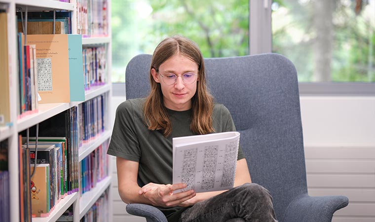 In der Mediothek mit einem lateinischen Buch in der Hand – so habe ich Benjamin Vollenweider das erste Mal gesehen. Schon damals war mir klar, dass er mein Interesse für diese bereits «tote» Sprache teilen musste. Heute weiss ich, dass hinter diesem Interesse noch viel mehr steckt, als die meisten zunächst vermuten würden. Während andere in ihrer Freizeit gar nicht erst ans Lernen denken, beschäftigt sich Benjamin nämlich mit antiken Sprachen.