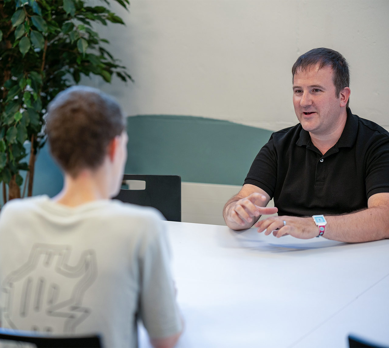 Zwei Schüler interviewen einen Lehrer, blicken dabei hinter die Kulissen der KZI und erfahren, welche Gedanken zu Gesundheitsförderung und Prävention gemacht werden.